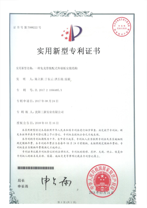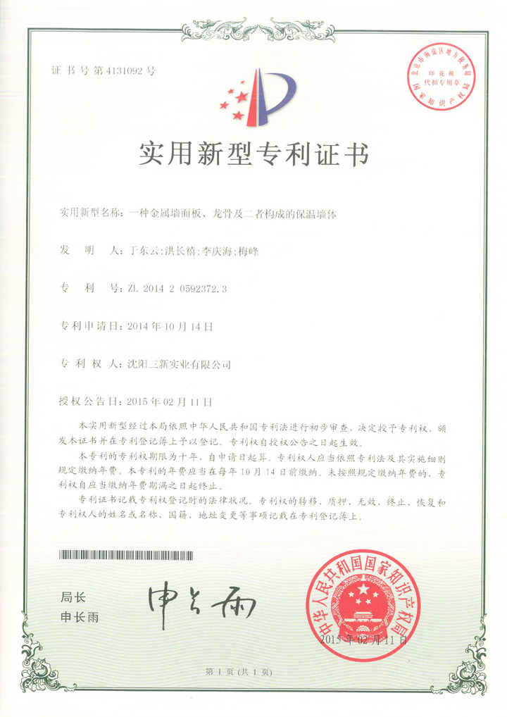 一種金屬墻面板、龍骨及二者構(gòu)成的保 溫墻體專利 |
