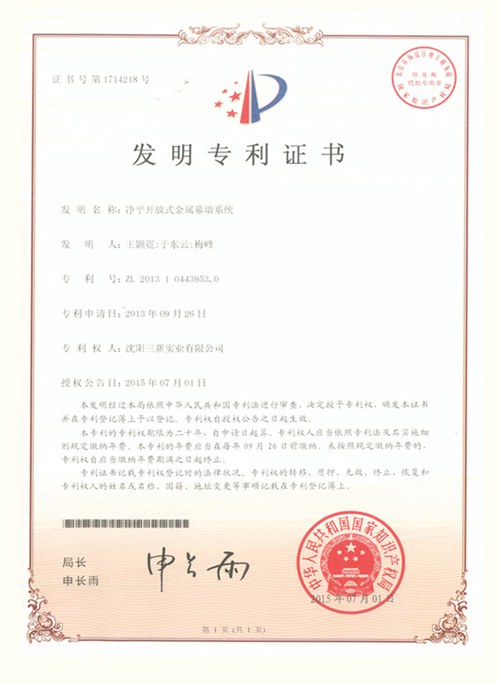 凈平開(kāi)放式金屬幕墻系統(tǒng) |