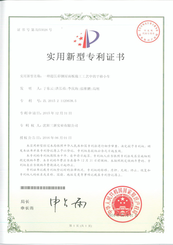 超長(zhǎng)彩鋼屋面板上平移小車 |